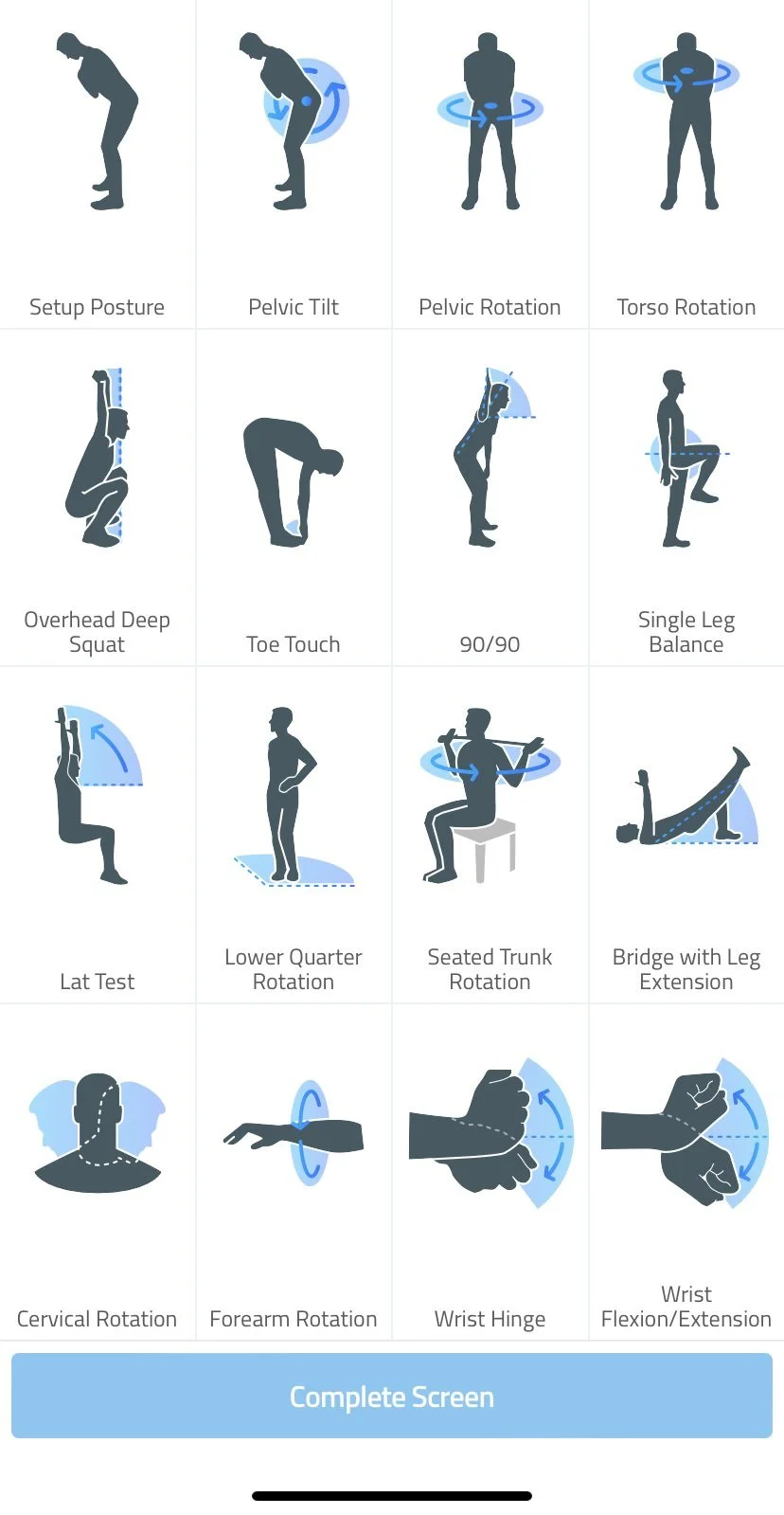 To achieve an efficient swing, a golfer must first be screened. A proper screen involves an assessment of swing mechanics, biomechanics, physical fitness, movement quality, current health, and injury history.
